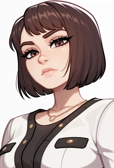 캐릭터 태그: 짧은 머리, 갈색 머리, 밥컷, 갈색 눈