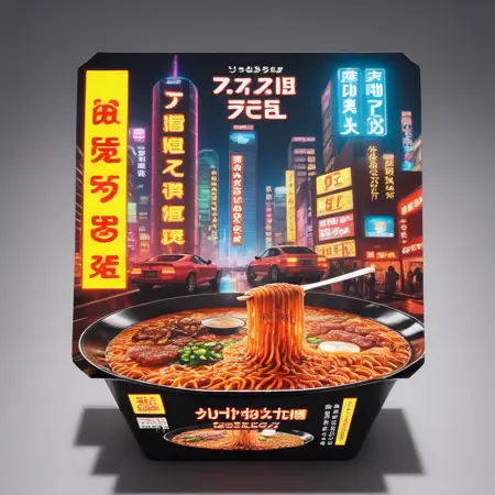 元々の計画は、異なる味の四角いインスタントラーメンを作ることだけでした。しかし、実際にはラーメンの包装形式に限定する必要がないことがわかりました。さまざまな周辺商品やコラボ商品、さらにはクールな広告にも応用できます。ただ、問題点として、Lora はすでにスタイルとレイアウトを学習しているため、インパクトやデザインをさらに向上させるために追加の要素を加える必要があります。