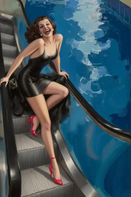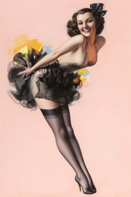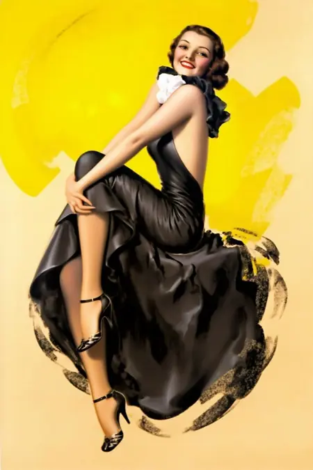 Trained on 45 illustrations by the American artist Rolf Armstrong (April 21, 1889 – February 22, 1960). He was a commercial artist specializing in glamorous depictions of female subjects. He is best known for his magazine covers and calendar art. In 1960 the New York Times dubbed him the “creator of the calendar girl.”[5] His commercial career extended from 1912 to 1960, the great majority of his original work being done in pastel. To see his works, please go to