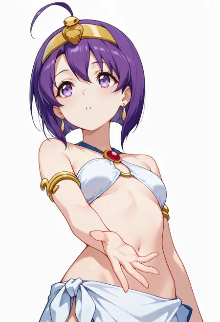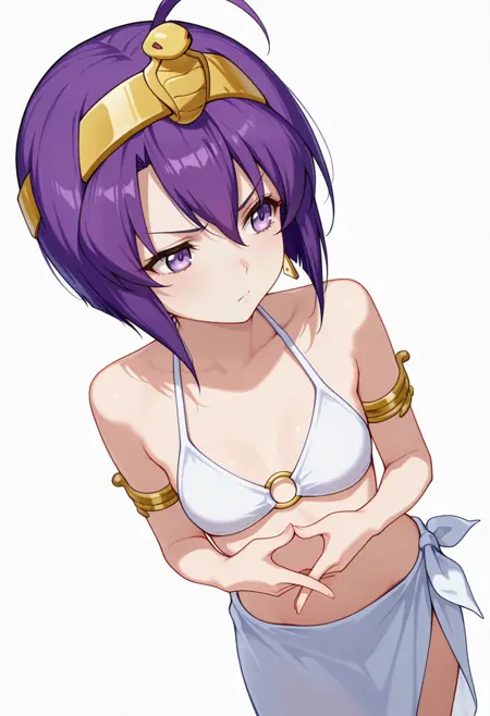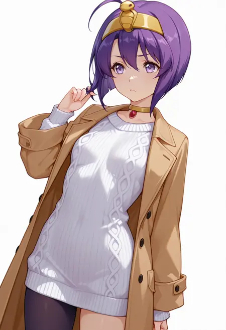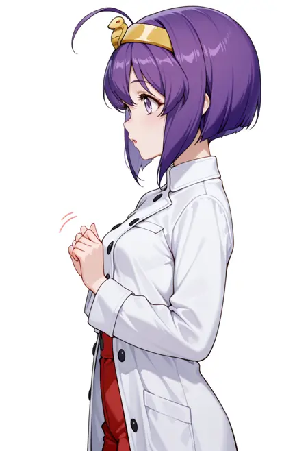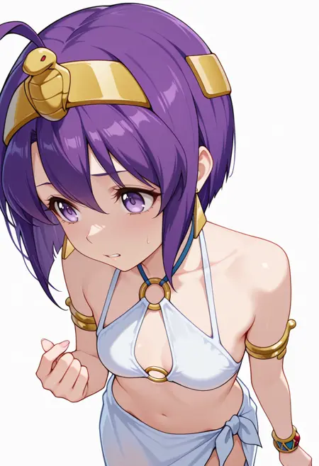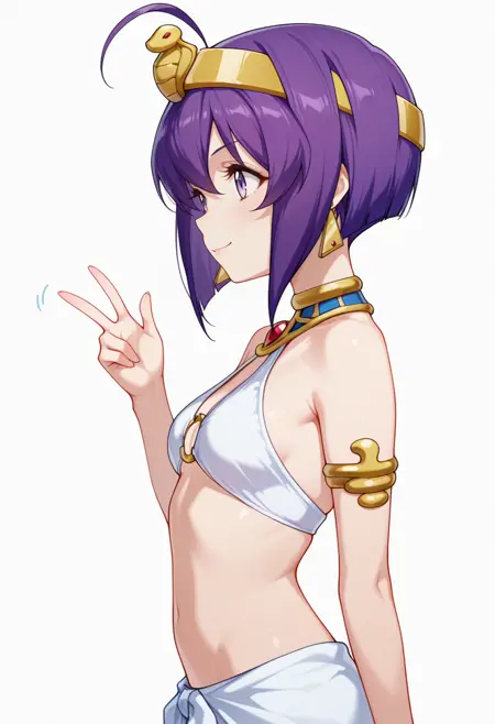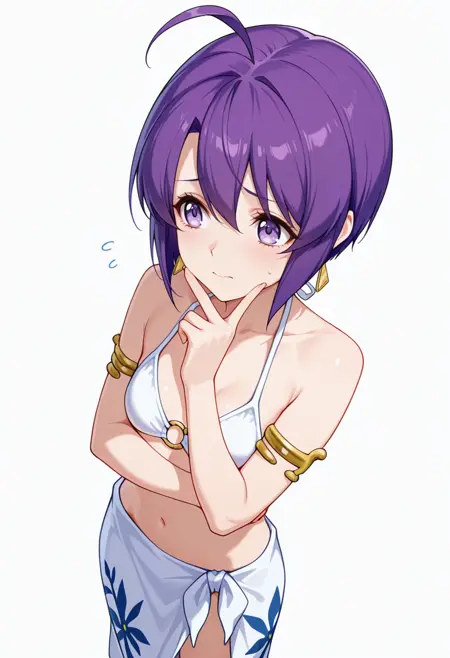medusa_cnr, 1girl, purple hair, short hair, ahoge, bangs,purple eyes, small breasts,