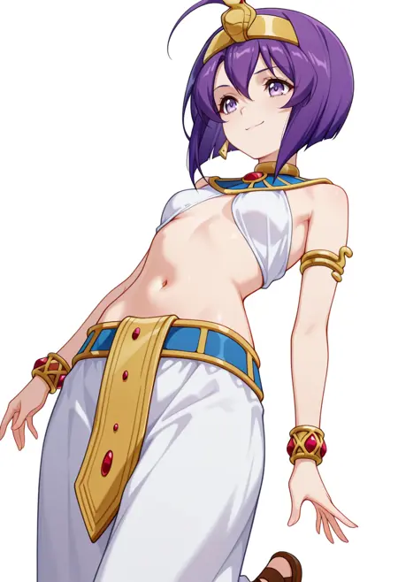 medusa_def_cnr,bare shoulders, midriff, navel,egyptian clothes, usekh collar, bracelet, earrings, armlet, sandals,hairband, egyptian,