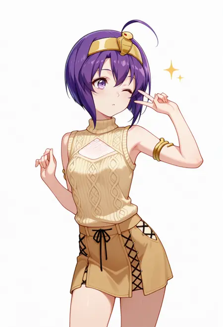 - このプロンプトセクションは、キャラクターが持つデフォルトの衣装に対応しており、メインタグと衣装が正しく生成されるようにするための補完タグで構成されています。
