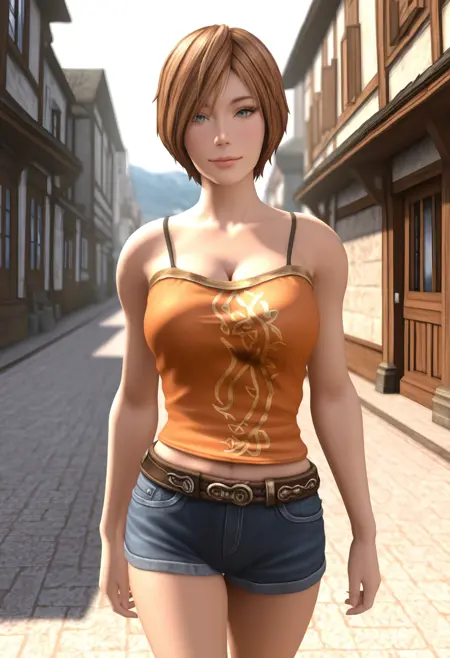 キャラクター - リアナ、ショートヘア、茶色の髪