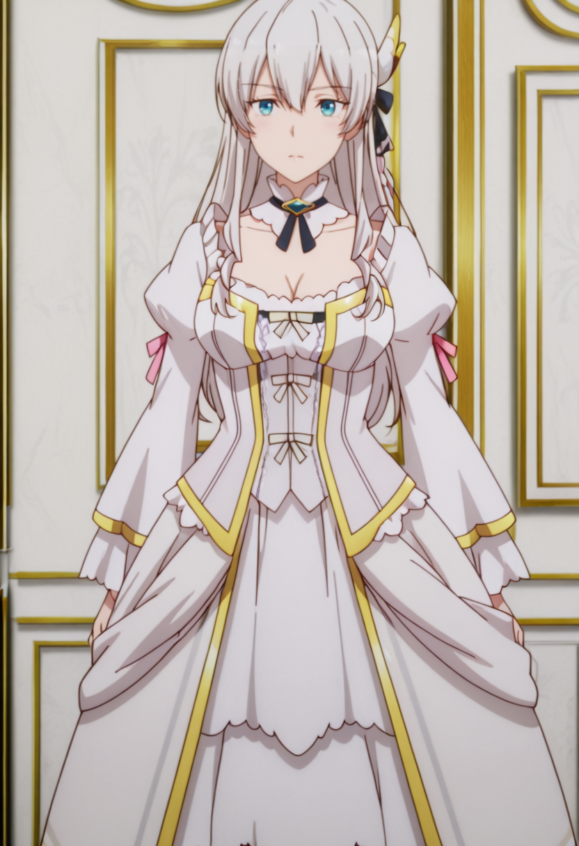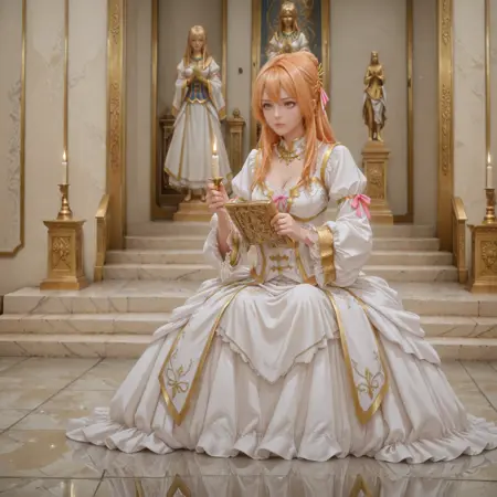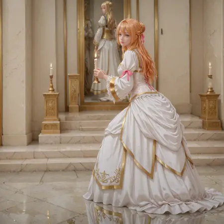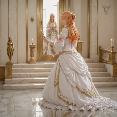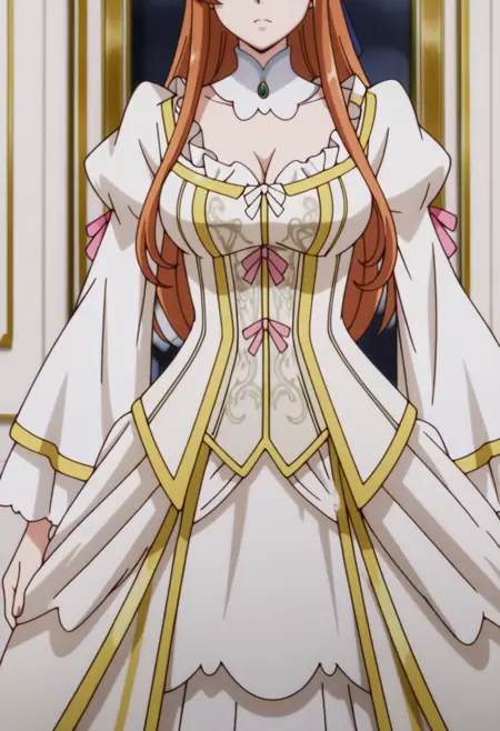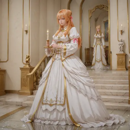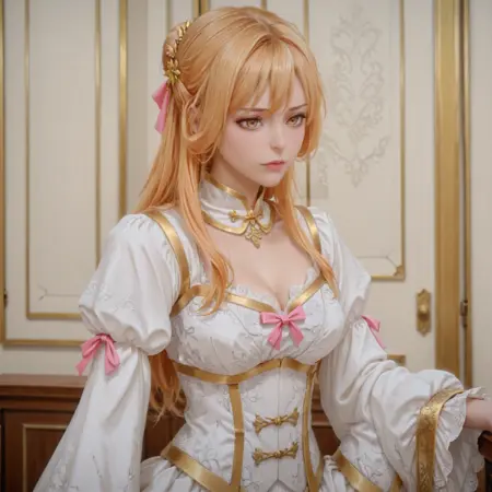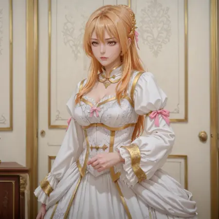 empress_outfit1 ||| empress_outfit1,masterpiece,best quality,ultra-detailed,(pure white dress:1.3),(gold embroidery:1.2),(pink ribbon accents:1.1),corset-style bodice,lace-up detail,puffed sleeves with gold trim,multi-layered skirt with ruffled hem,soft glowing fabric,volumetric lighting,intricate textures,(high-resolution:1.2),dynamic shading ||| empress_outfit1,(pure white dress:1.3),(gold embroidery:1.2),(pink ribbon accents:1.1),corset-style bodice,lace-up detail,puffed sleeves with gold trim,multi-layered skirt with ruffled hem,soft glowing fabric,volumetric lighting,intricate textures,(high-resolution:1.2)