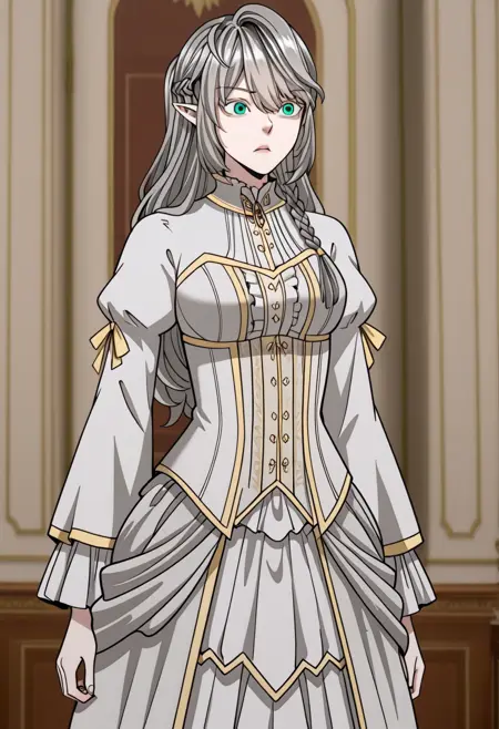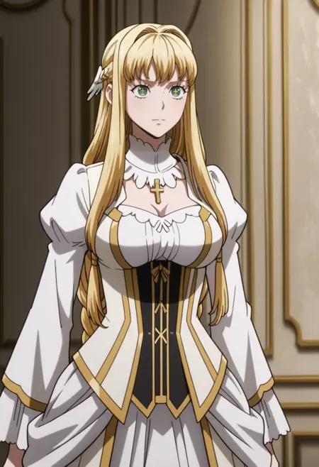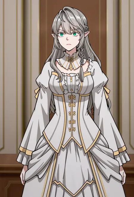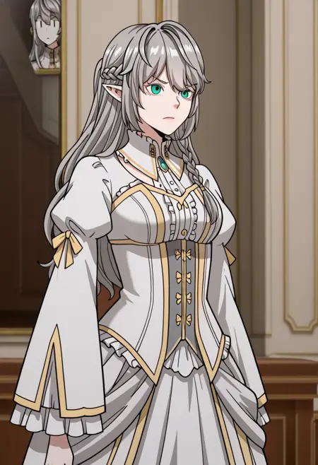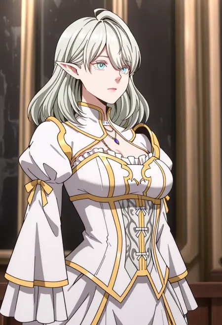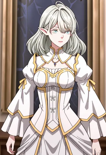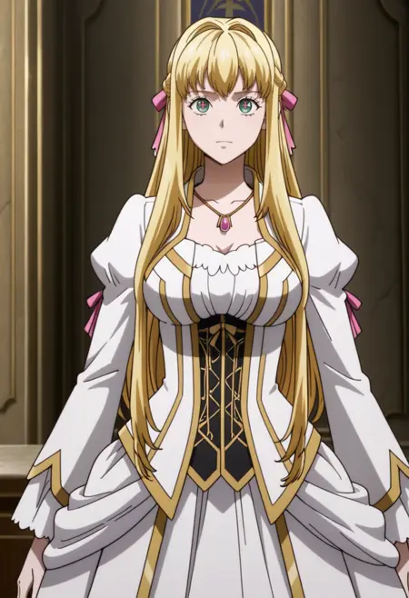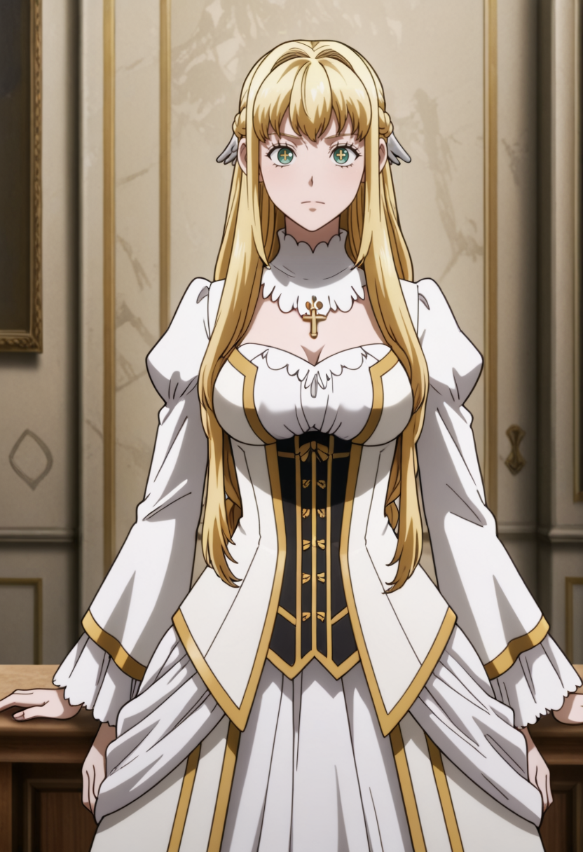 empress_outfit1 ||| empress_outfit1,masterpiece,best quality,ultra-detailed,(pure white dress:1.3),(gold embroidery:1.2),(pink ribbon accents:1.1),corset-style bodice,lace-up detail,puffed sleeves with gold trim,multi-layered skirt with ruffled hem,soft glowing fabric,volumetric lighting,intricate textures,(high-resolution:1.2),dynamic shading ||| empress_outfit1,(pure white dress:1.3),(gold embroidery:1.2),(pink ribbon accents:1.1),corset-style bodice,lace-up detail,puffed sleeves with gold trim,multi-layered skirt with ruffled hem,soft glowing fabric,volumetric lighting,intricate textures,(high-resolution:1.2)