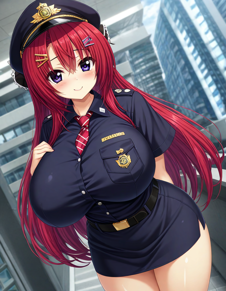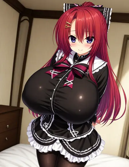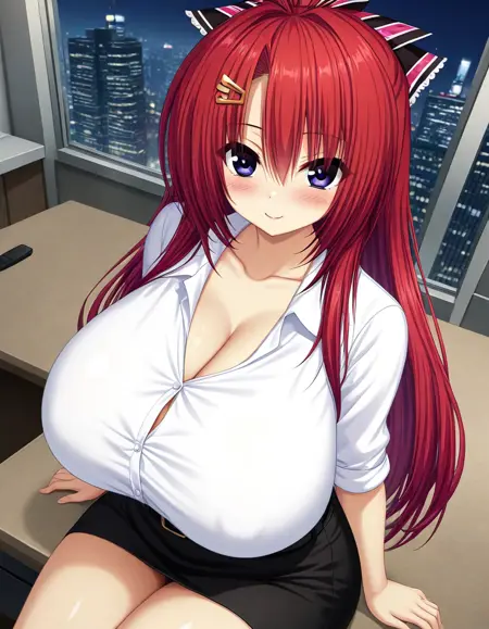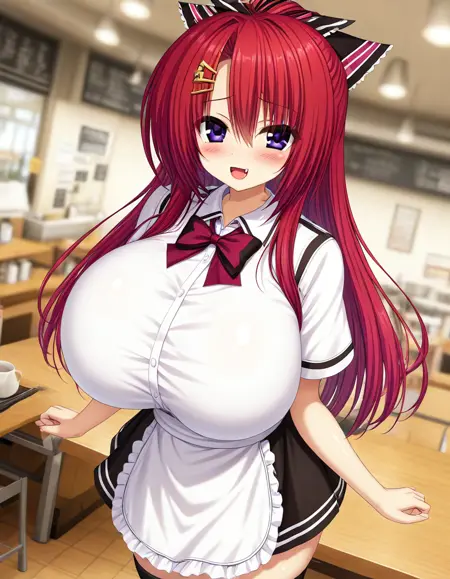推荐提示:Kohane Ibuki, large breasts, blue eyes, red hair, long hair, hair ribbon, hairclip, fang,