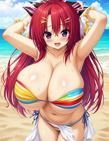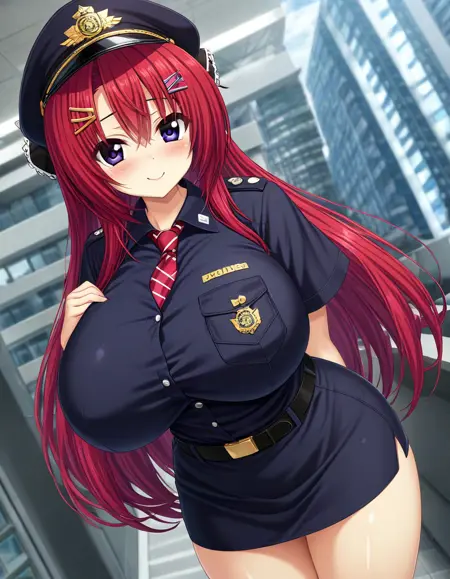 Recommend Prompt:Kohane Ibuki, large breasts, blue eyes, red hair, long hair, hair ribbon, hairclip, fang,