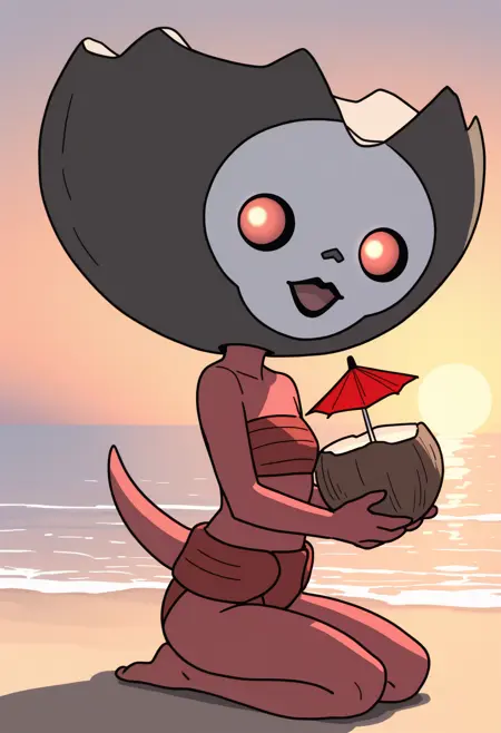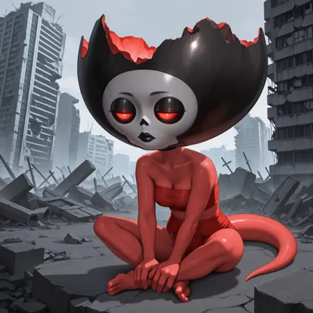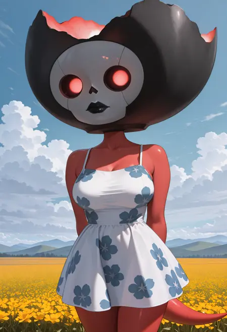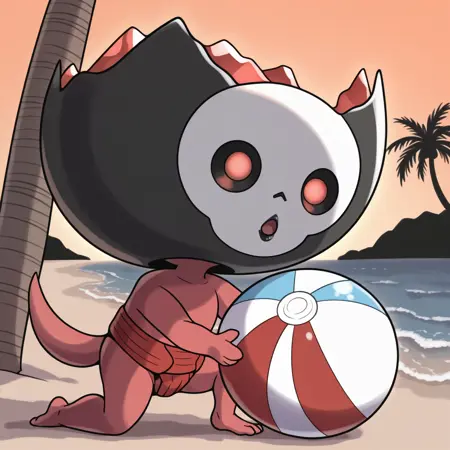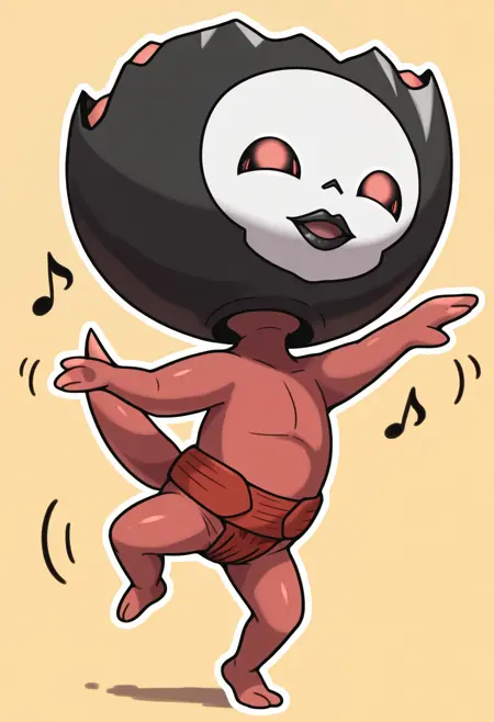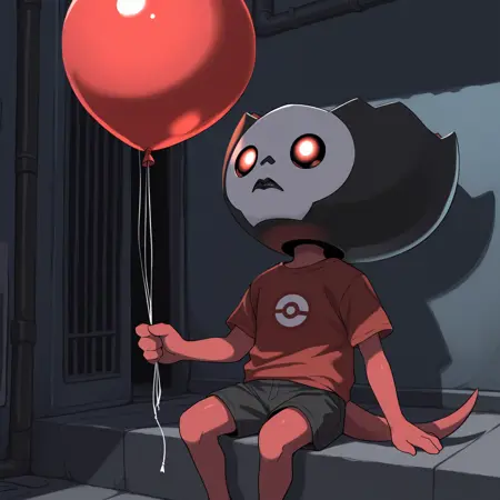 - 기본 외모: m1m4n, 인간 없음, 포켓몬(생물), 붉은 피부, 검은 마스크, 빛나는 눈, 붉은 눈, 검은 입술, 풋도시, 꼬리
