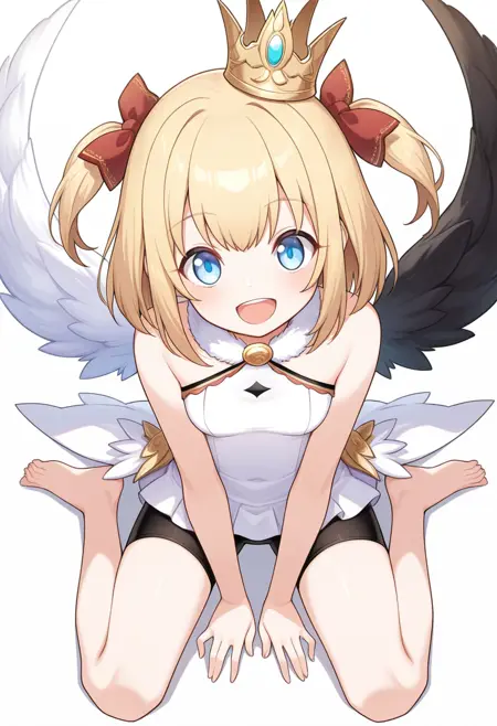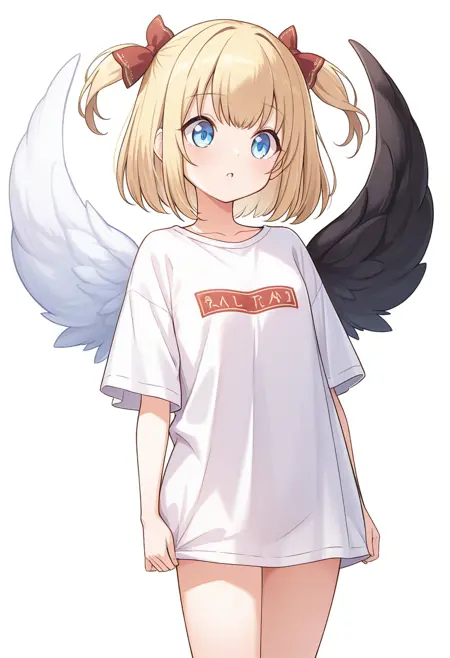 marl \(shironeko project\), short hair, hair bow, two side up, asymmetrical wings