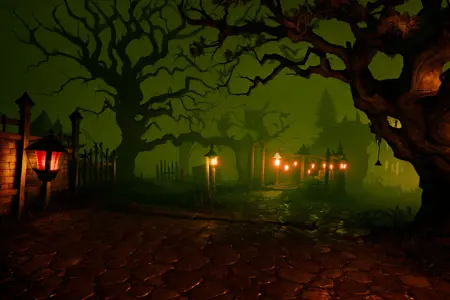 关键词要素:地牢,墓穴,墓碑,栅栏,铁门,十字架,十字军,中世纪古堡,哥特式建筑,洞穴,怪异的树,奇花异草,恐怖怪诞的氛围,篝火,彩色玻璃,废墟,荒岛,杂草,枯树,棺木,藤蔓枝条,参天古木,死亡气息,腐朽,荒芜,恶魔,高墙、村落、沼泽、王城、监牢、教堂、雪地,古代遗迹