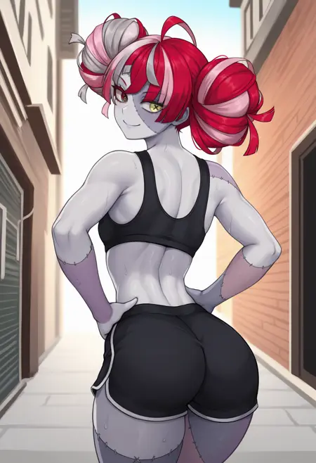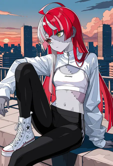 自定义服装: kureijirnd, zombi, 双色皮肤, 拼接皮肤, 缝合线, 缝合脸部, 缝合手臂, 多色头发, 红发, 粉发, 白发, 灰发, 齐平发尾, 双发髻, 发带蝴蝶结, 黑色蝴蝶结, 异色瞳, 红眼, 黄眼, 不匹配的瞳孔, 钻石形瞳孔, X形瞳孔