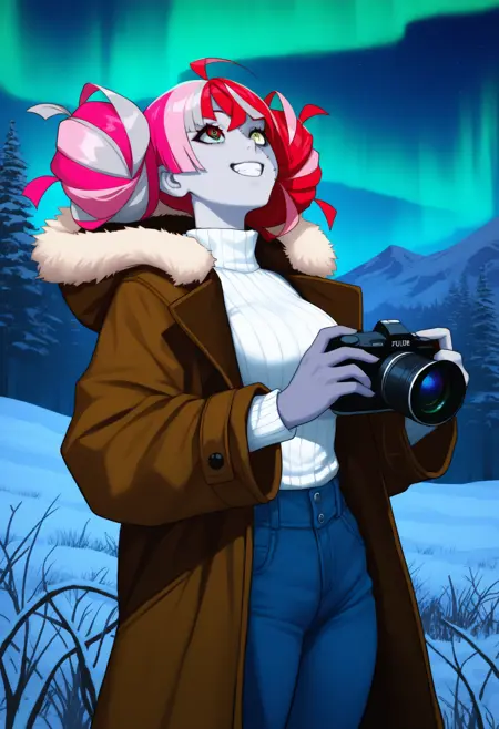 新年(无效): kureijinewyr, zombi, 双色皮肤, 拼接皮肤, 缝合线, 缝合脸部, 缝合手臂, 短发, 多色头发, 红发, 白发, 灰发, 天线辫, 异色瞳, 红眼, 黄眼, 不匹配的瞳孔, 钻石形瞳孔, X形瞳孔, 日本服饰, 黑色和服, 花纹图案, 带子, 红色腰带, 黑色长裤, 阔腿裤, 黑色项圈, 指甲油, 黑色指甲, 裸露肩膀