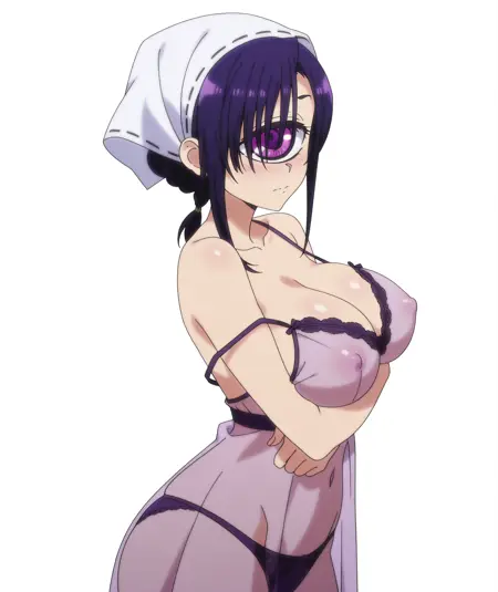 한쪽 눈, 머리수건, 사이클롭스, 보라색 눈, 보라색 머리, 땋은 머리, 몬스터 소녀, 앞머리, 검은 머리, 옆머리,