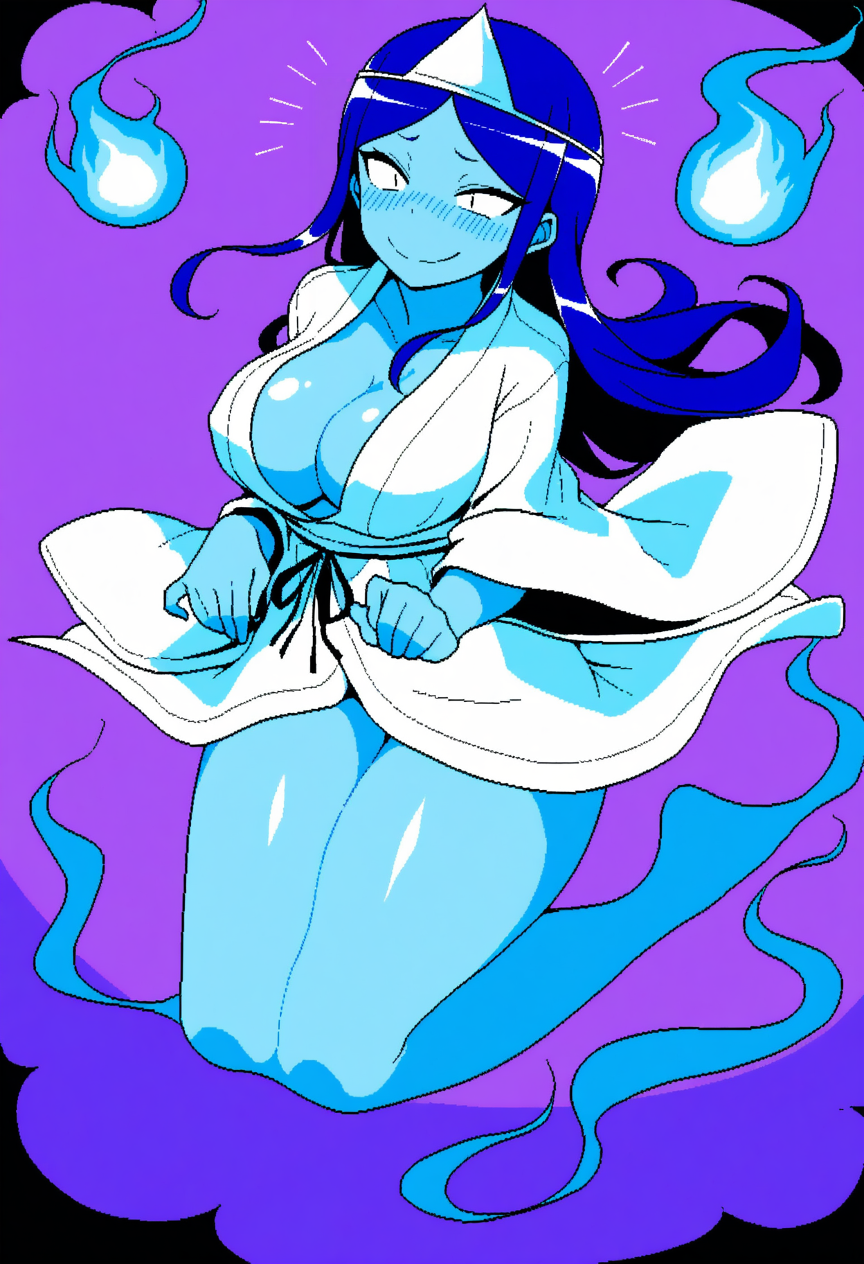 2.bitch ghost1,1girl,ghost,solo,colored skin,blue skin,blue hair,long hair,large breasts,blush,