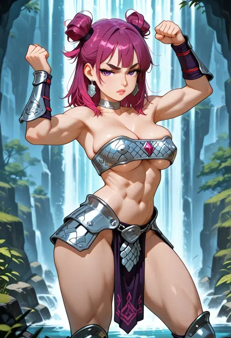 This lora is loaded with images of sexy girls in a cartoon-anime style, with skimpy armors and a shortstack proportion (5-6 heads of tall), the labels are made to select parts of the armor and make ur own combination.