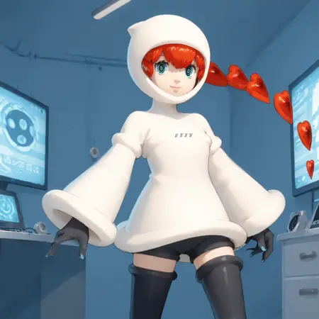 트리거 단어: 소피아 페르소나, 흰 후드티, 빨간 머리, 떨어진 머리카락, 하트, 검은 신발,