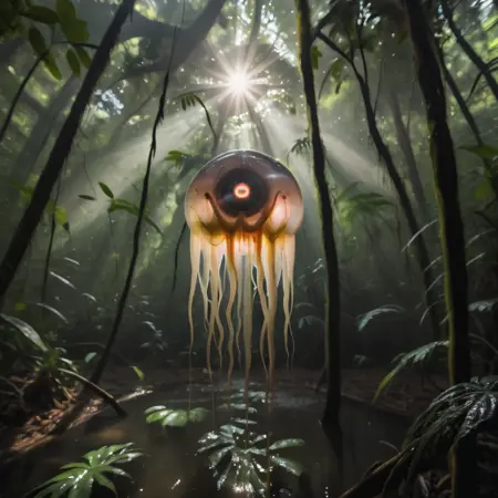 This is a LoRA (XL) for creating KAYI (floating one eyed explosive strength draining jellyfish of the jungle) for use in medieval rpgs.