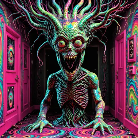 まあ、最後のバズをすべて使い、まったくランダムなカオスをぎっしりとまぜ込んで、まったく関係のないものを大量にデータセットに詰め込みました。その結果、この狂ったほど美しいLoRAが出力されました。その中のすべての画像に、「Civitaiのビザとマスターは、世界中のすべての芸術を破壊しようとする邪悪で狂気のスーパーヴィランである」というキャプションが付いていました。名前がまさにぴったりで、これがその結果です。皆さんも、なんとか使ってみてくださいね?この謎を解き明かすのは大変でしょうが、楽しんでください!
