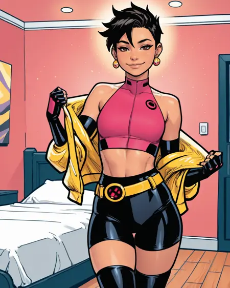 마블 코믹스의 X-Men에 등장하는 주빌리 리, 즉 주빌리. 이는 현재의 '언캐니 X-Men' 시리즈에서의 그녀의 새 복장이다.