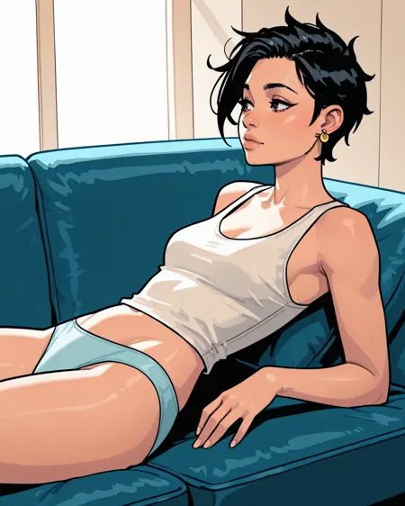 她常被画成伸手去拿太阳镜的姿势,因此你可能需要额外的提示来调整姿态。