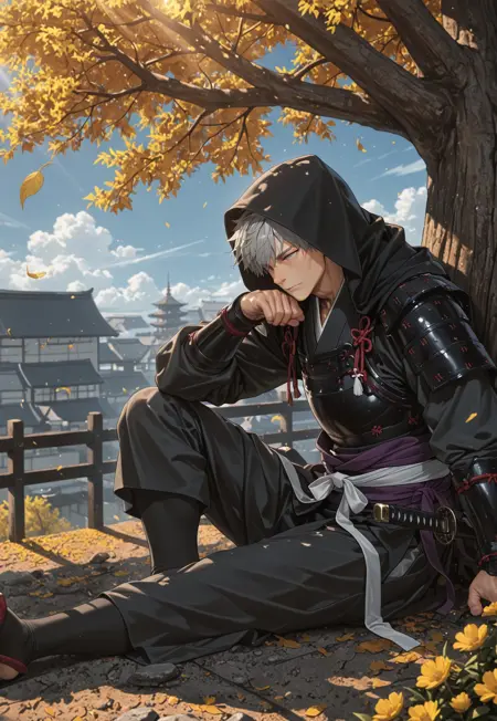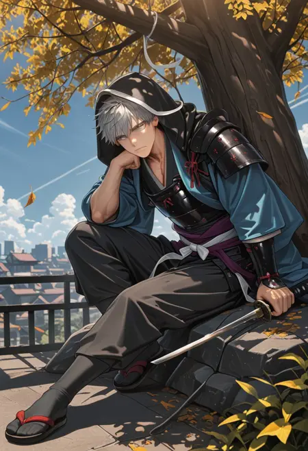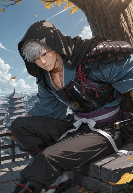 hood, armor, samurai, kimono, sash, pants, socks, zouri,