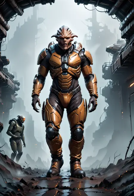 Lora of a Dune Stillsuit. The second version of this, v1.0, has quite a bit better quality than the first, but still needs some improvement. Keyword is stillsuit. Be gentle, this is my first time training.