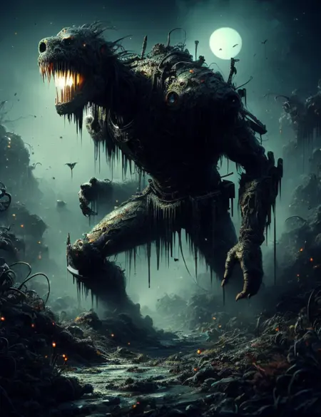 ぼやけた悪夢の不気味な領域では、現実がねじれ、影が息づく。そこには超現実的な恐怖が潜み、一歩踏み出すたびに、心の冷たい深淵へとより深く入り込んでいく。