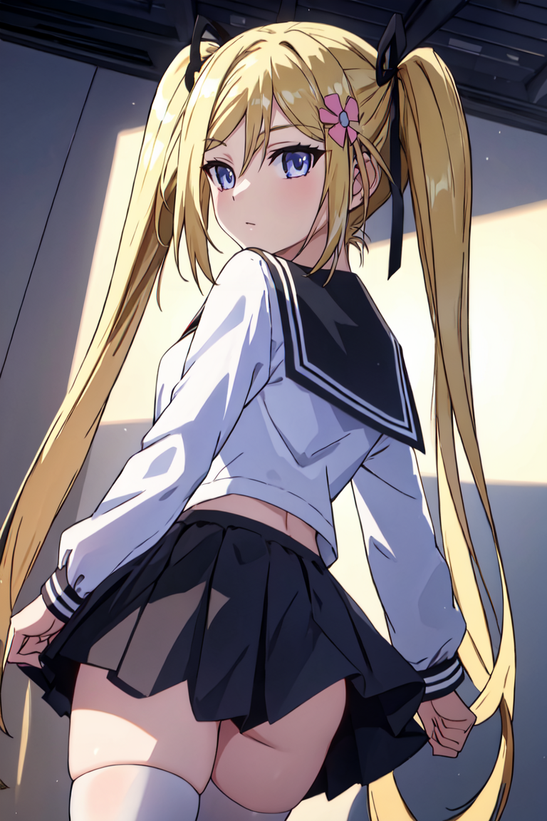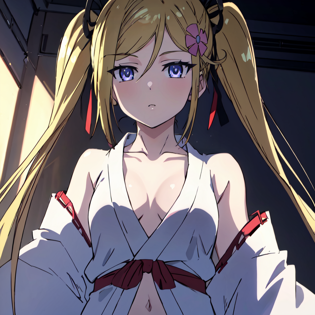 她的外观:Mafuyukanojo,小乳房,金发,蓝眼,双马尾,发饰花朵,黑色发带(是的,标签很多,我希望保留灵活性)