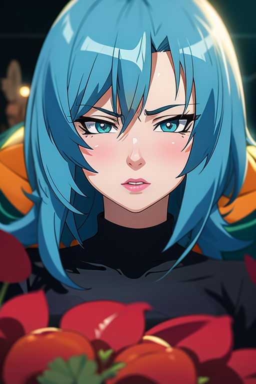プロンプト:鮮やかで複雑なフルカラーのポートレート、25歳の女性、青い髪、緑の目、白いシャツと赤いネクタイを合わせたレディースブラックスーツを着用、壮大な構図、Alessio Albi、Nina Masic、鮮明な焦点、自然光、サブサーフェススキャタリング、f2、35mm、