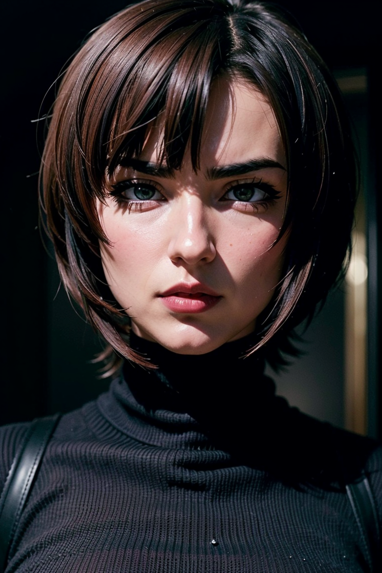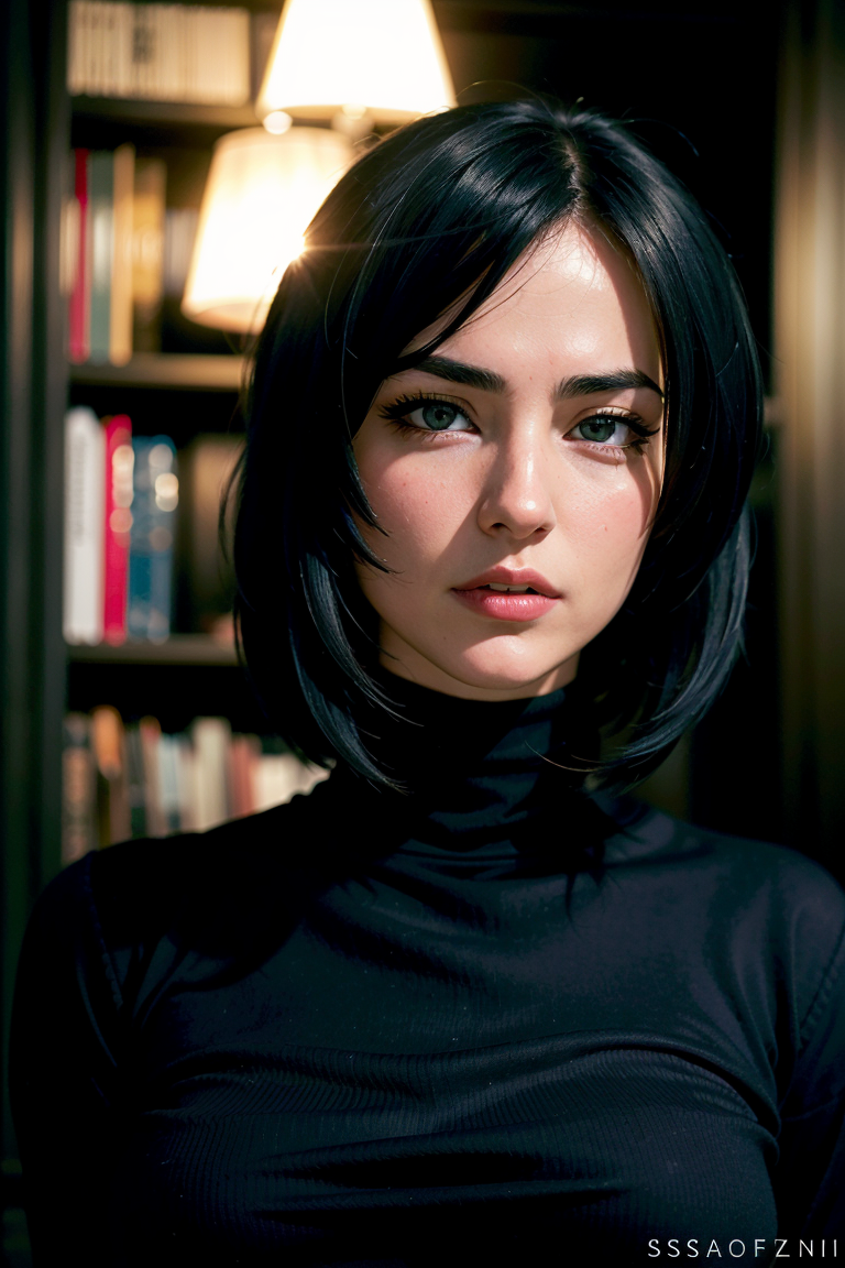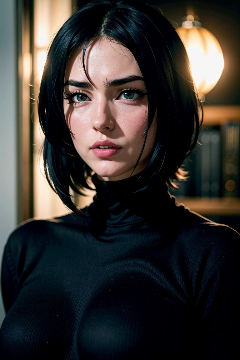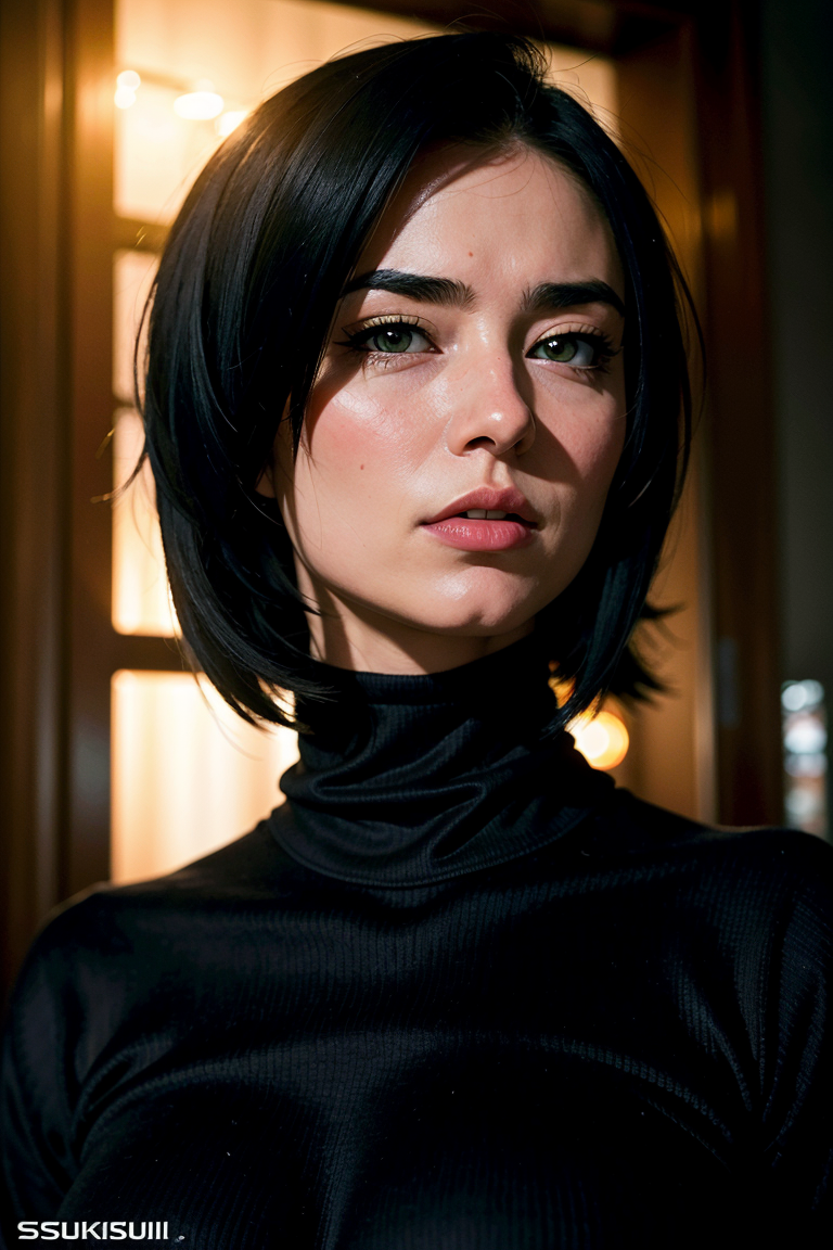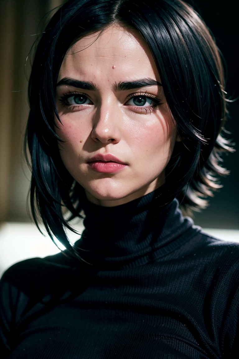 zaraZof1の鮮やかで複雑なフルカラーのポートレート、ブラックのタートルネックを着用、壮大なキャラクター構図、Ssunbiki、Alessio Albi、Nina Masic、鮮明な焦点、自然光、サブサーフェススキャタリング、f2、35mm、Ssunbiki、