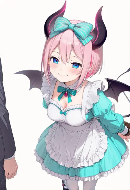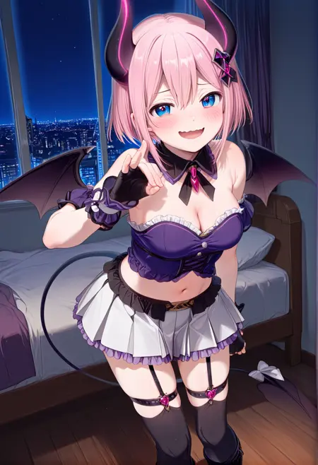 pink hair, short hair,blue eyes,breasts, Relm midnight, devil horns,devil tail,devil wings,wings