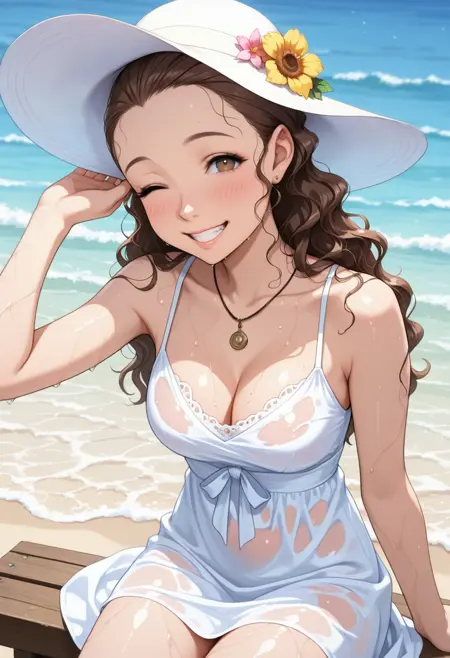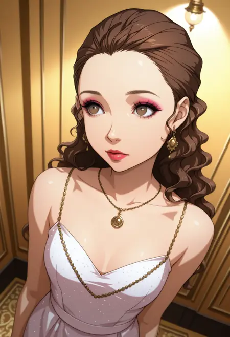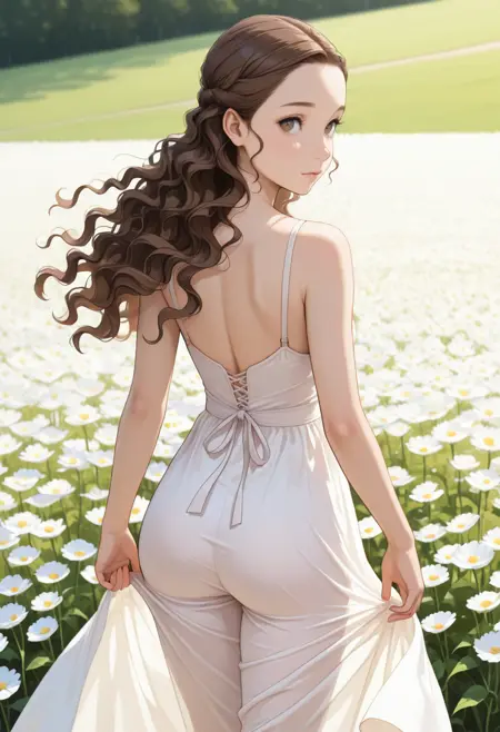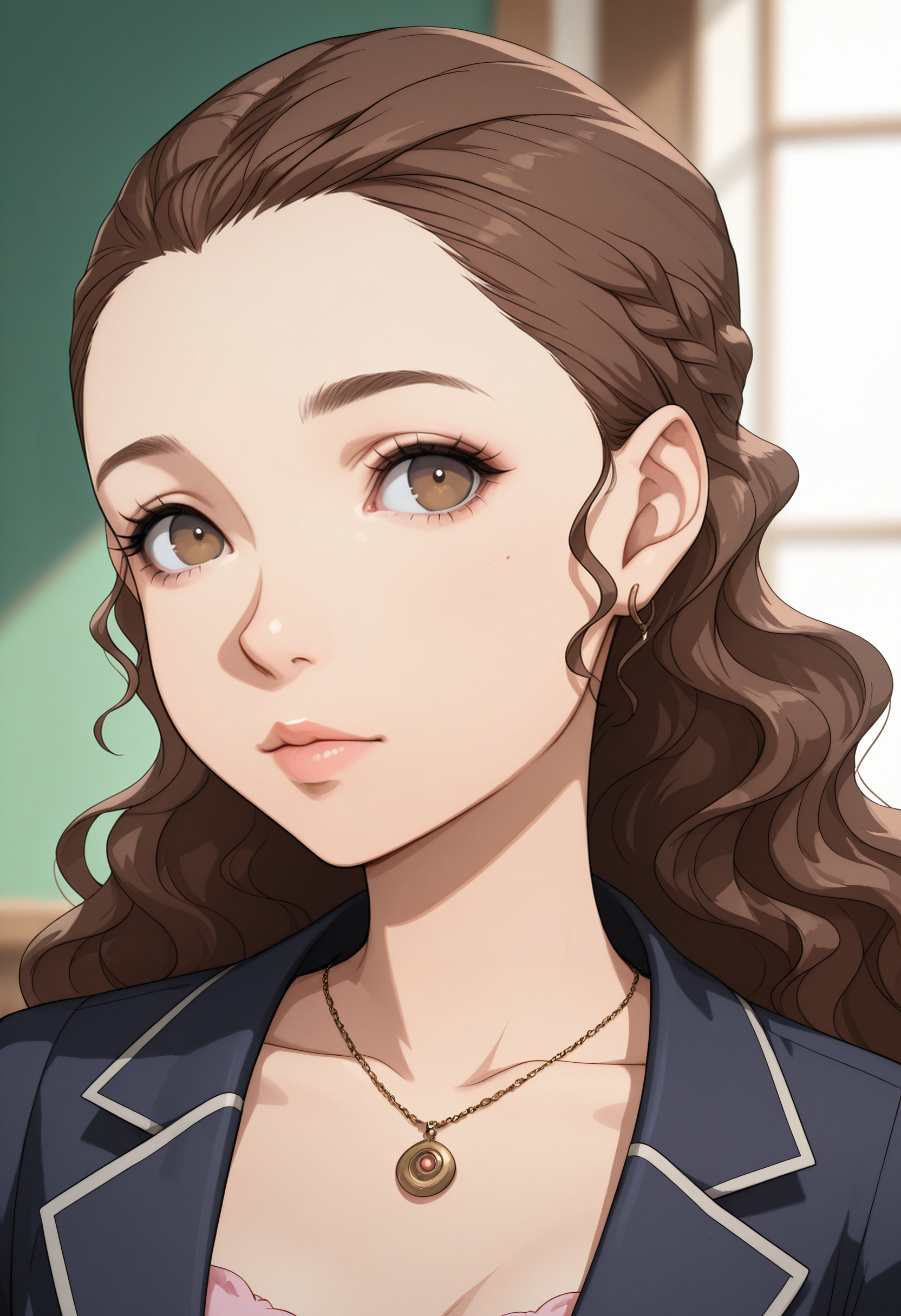 P4Eri, 1girl, brown eyes, long hair, brown hair, wavy hair