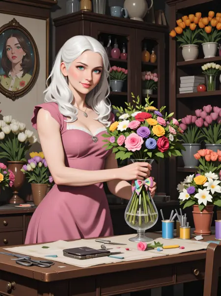 The uses of this LoRA are near endless; however, a challenge is the need to specify white hair in your prompt if you wish for that to remain consistent. To get my signature hairstyle, use the word coiffed.