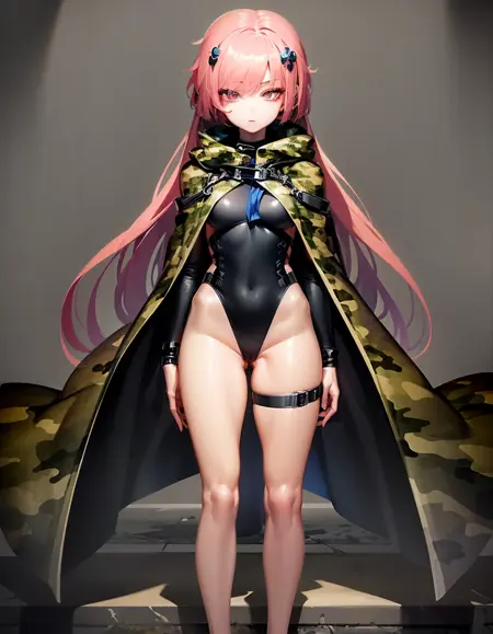 NTW20Mod(损坏中,会尝试修复) 模型使用请勿使用任何关键词,仅使用(1girl,斗篷,迷彩,黑色紧身衣,发饰,长发,赤脚)