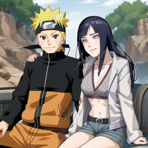 NarutoHinataRTN, a man and a woman, hetero, standing, smile, cowboy shot