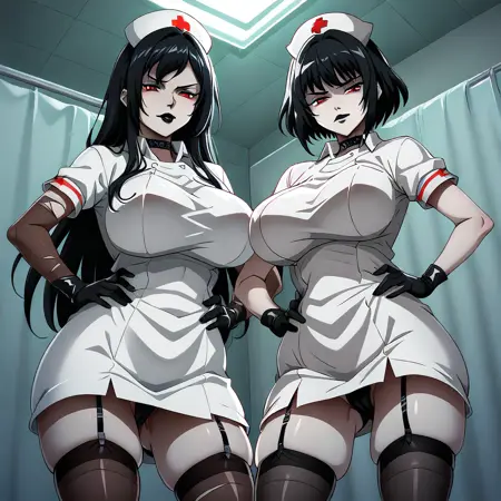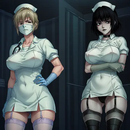 goth,medical gloves,surgical mask,elbow gloves,,latex shoulder gloves,elbow gloves ,doctor stethoscope,large breasts, black latex gloves, gloves under sleeves,