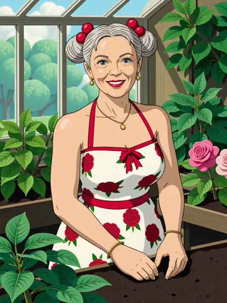 为此,我的LoRA被设计得尽可能多功能,最终结果证明它能很好地适应多种风格(例如写实、像素艺术和动漫)。我常发的发型关键词是“1940年代风格的鲍伯头”,而“成熟女性”这一表述效果很好,但我使用这个LoRA的唯一两条规则是:发挥创意,享受乐趣!