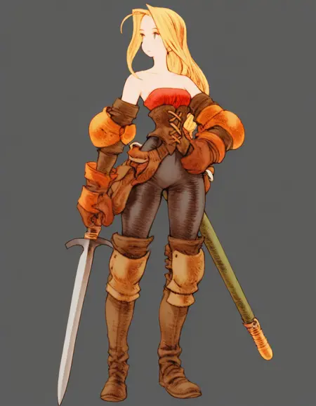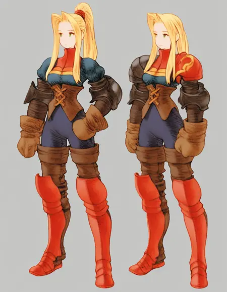 The intend of this LoRa is to provide a tool to generate your own classes/jobs using the style of Final Fantasy Tactics art by Akihiko Yoshida. This model can also be used to generate fantasy related artwork with some "handmade" feeling to it!