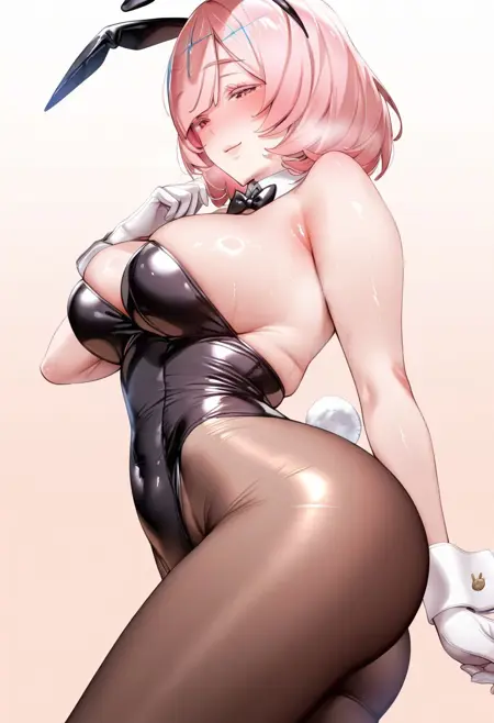 bunny_ypdp963, playboy bunny, pantyhose, gloves, animal ears, rabbit tail, detached collar, bow, strapless leotard,