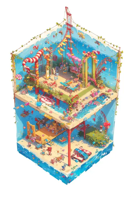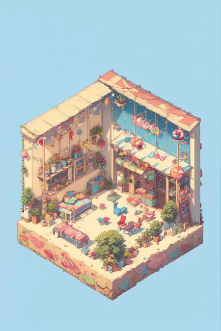 此LoRA旨在帮助生成等距艺术,推荐权重为0.7