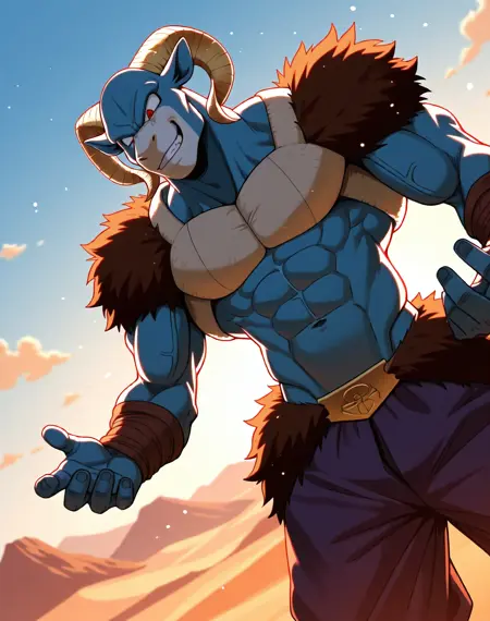 このLoRA用のプロンプトは(モロ、筋肉質、ヤギ)です。
