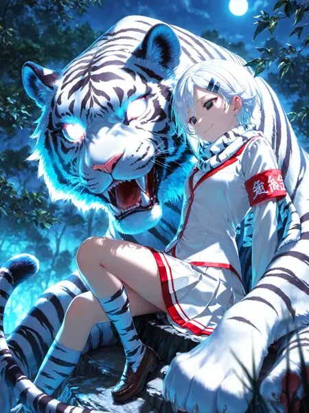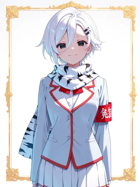 校服, 围巾, 老虎纹, 袖章, 百褶裙, 过膝袜, 乐福鞋