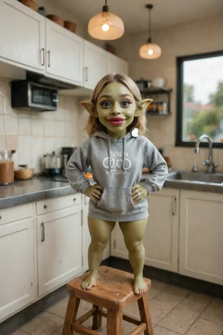 Prompts: goblin, short, small, pointy ears, green skin, big lips, big eyes