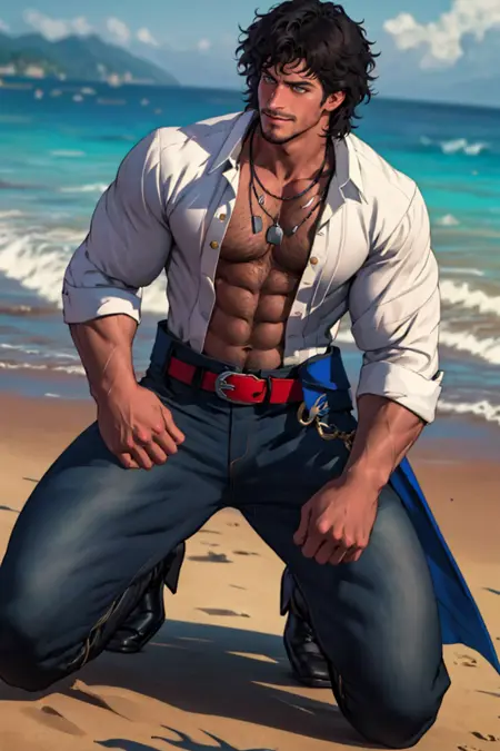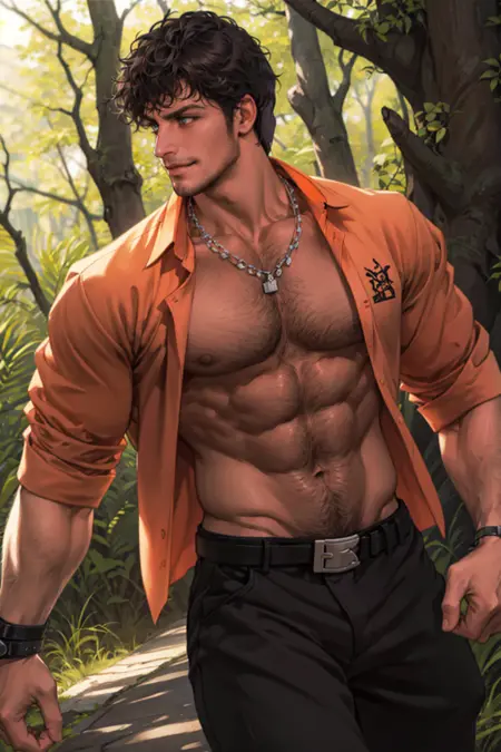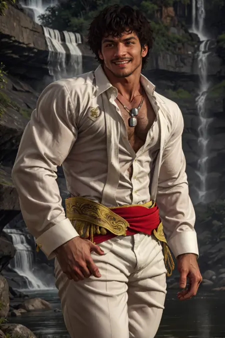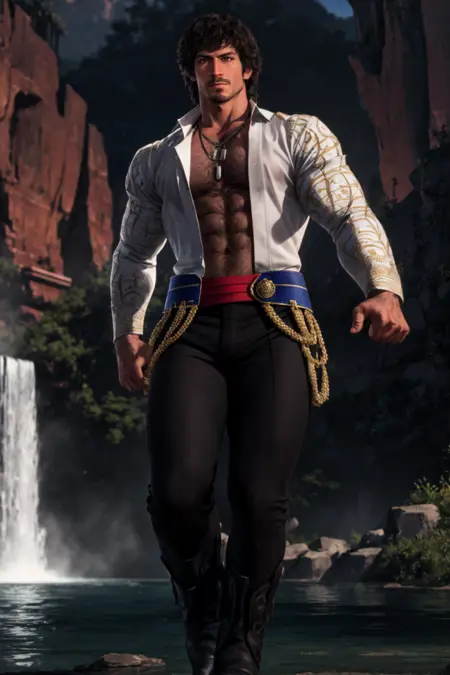 also: ( white/orange ) shirt, (matador) pants, red stash, fingerless gloves, necklaces, boots, belt, red jacket