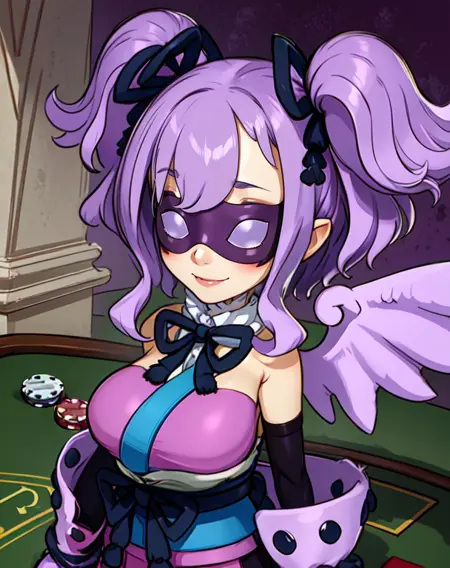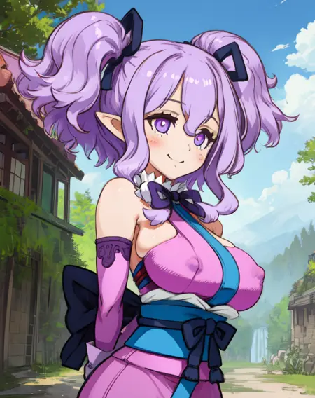 ceefore, purple hair, twintails, purple eyes, pointy ears,