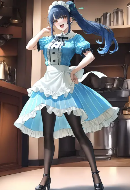 tsuruga ami,1girl,looking at viewer,blue hair,ponytail,long hair,brown eyes
