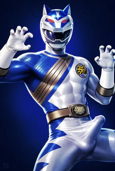 Wild Force Silver Ranger:w1ldf0rce silver,helmet, mask, belt, white gloves, bodysuit, tokusatsu, white bodysuit, blue bodysuit, multicolored bodysuit