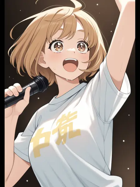 hutuu_no_keionbu_tamaki, short hair, bob cut,light brown hair, brown eyes,symbol-shaped pupils,sparkling eyes,