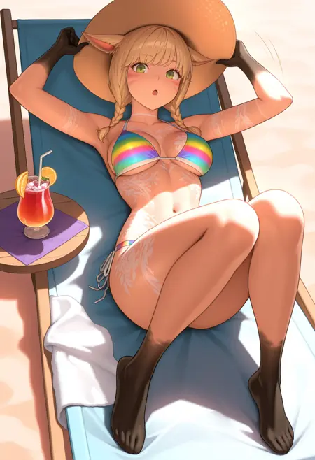 该LoRA专注于增强现有概念,通常表现为手套/过膝袜,而非皮肤本身。