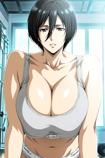 mikasa ackerman, 黒髪, (黒目), 目の間の髪, 短髪,